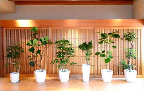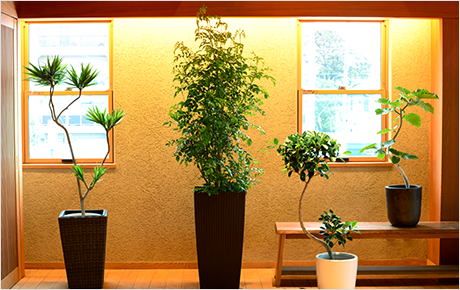 オフィスや商業施設、モデルルームで様々な樹種の中から設置条件やお客さまのご要望に合わせたグリーンをご提案し、メンテナンスまでいたします。経験・知識・技術が豊富なスタッフによるグリーンを生かした魅力的な空間づくりときめ細かなサービスが、これまでも多くのお客様にご評価いただいています。